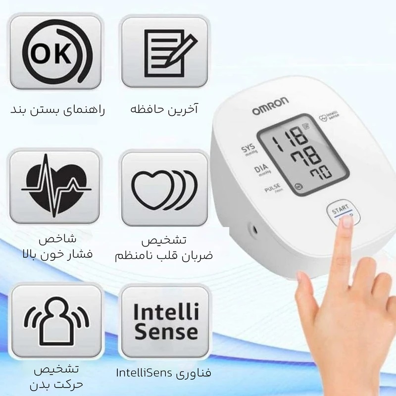 فشارسنج بازویی امرن M1 Basic از سریهای خوشنام Omron برای سنجش دقیق فشار خون در خانه است. این مدل با کاف بازویی سایز ۲۲–۳۲ سانتیمتر، کارکرد بسیار ساده (یک دکمه)، تشخیص آریتمی و صفحهنمایش LCD خوانا طراحی شده تا افراد در هر سنی بتوانند بهراحتی فشار خون سیستولیک/دیاستولیک و ضربان قلب را پایش کنند. منبع انرژی دستگاه باتری است و بسته به سری ساخت، حافظه ذخیره نتایج (آخرین نتیجه یا تا ۳۰ رکورد) را ارائه میدهد. فناوری هوشمند IntelliSense به باد کردن بهینه کاف کمک میکند تا اندازهگیری سریع، راحت و دقیق انجام شود.