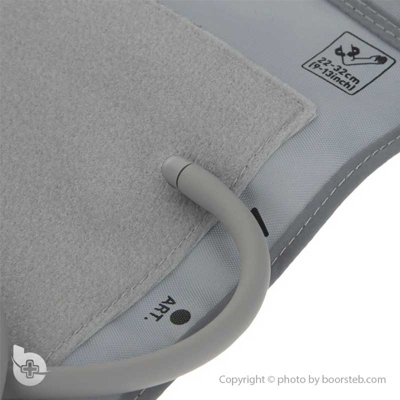 کاف استاندارد خانگی: کاف پارچهای خوشکیفیت برای دور بازوی ۲۲–۳۲ سانتیمتر؛ نشانگر صحیح بستن کاف.